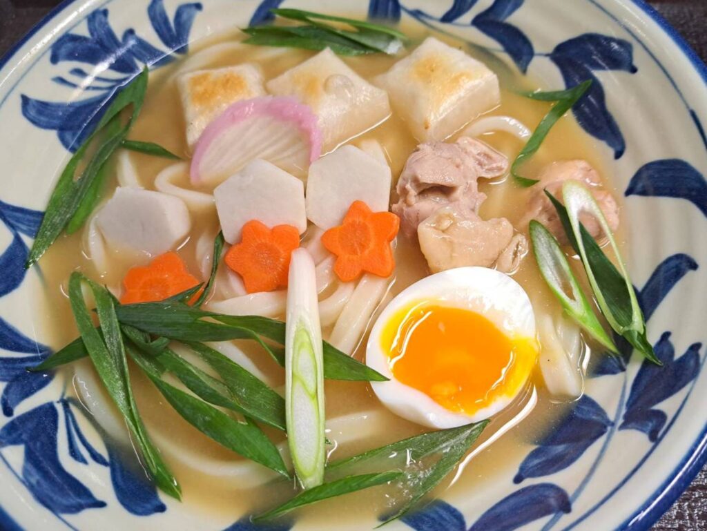 中には、縁起物のお餅、ホクホク食感の里芋、そしてお出汁をまろやかに引き立てる半熟卵をトッピング。里芋の優しい味わいと、卵の黄身が溶け出したお出汁のハーモニーは格別です。