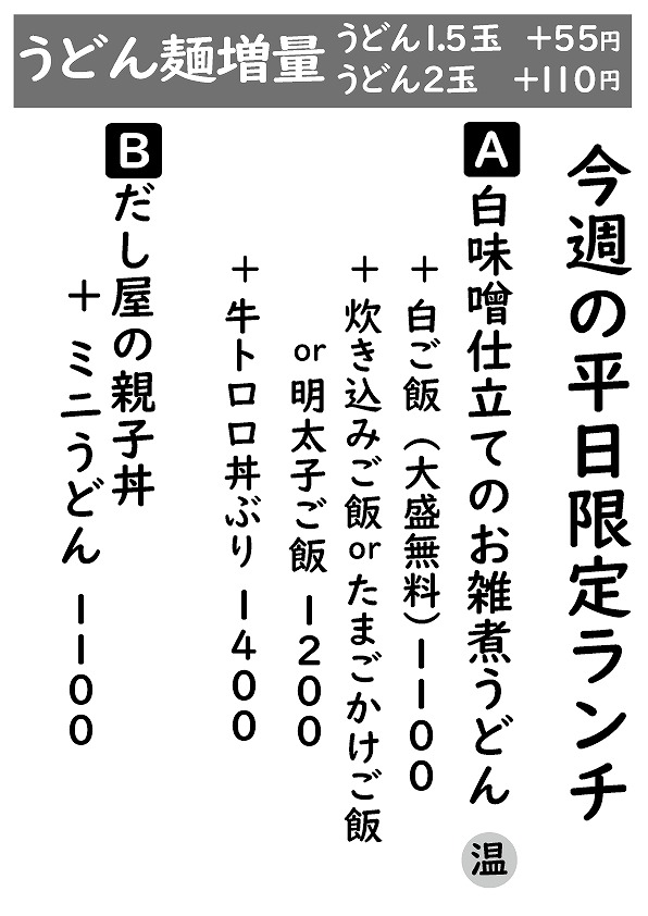 だし屋 平日限定ランチ(1月5日~1月16日)